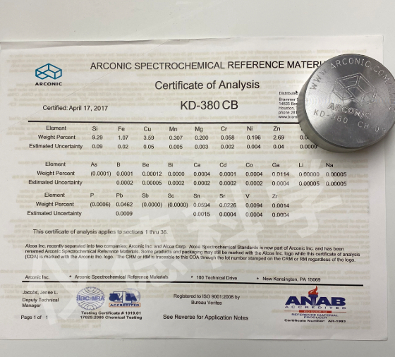 | AA KE-380 | 9.6 | 0.2 | 0.02 | 0.03 | 3.6 | 0.03 | 0.005 | 0.005 | 1.1 | 0.02 |